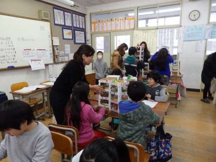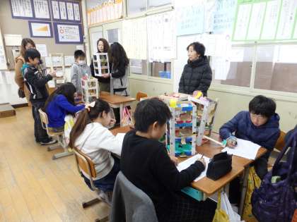 グループ内で自分の作品の説明をしたり,頑張ったところを披露したりしました。