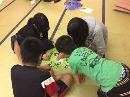 トランプで遊んでいるグループが多いですね。