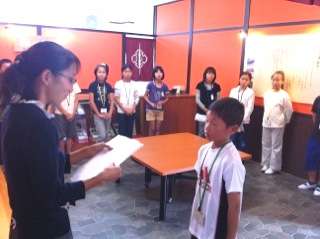 「私は元気いっぱいにできて,富士ゼロックスの仲間のみんなと協力できました。お母さんがいつも『つかれたー』といって帰ってきます。私は,仕事なんか学校よりも楽やろなぁと思っていました。でも,今日,実際にやってみると,すわる時間もありませんでした。ずっと立っていました。そして私は,お母さんが『つかれたー』といって帰ってくるのが分かりました。でも,楽しかったです。また,してみたいです。」(T.R)