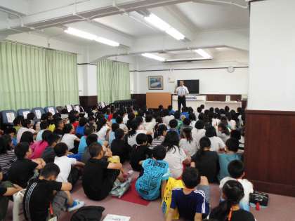 一日の仕事を終えた後,広場で全員で振り返りをしました。