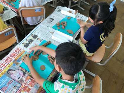 図工では,粘土でたくさんのご馳走を作ってパーティをしました。