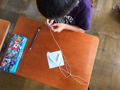 今回は,紙とストローとタコ糸を使って,工作をしました。