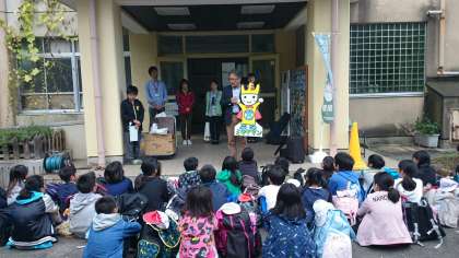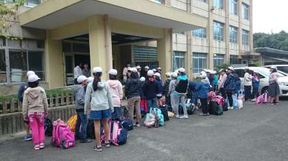 5年生が今日から琵琶湖フローティングスクールに出発しました。平成29年度,平成30年度の取り組みで,5年生児童が滋賀県の小学校と一緒に船に乗って琵琶湖を巡ります。42名全員が揃って出発できました。