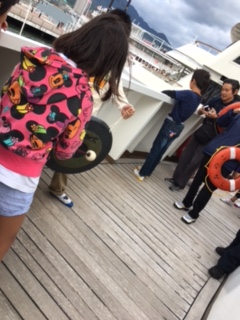 船が出港するときにはドラを鳴らします。そして操舵室では船長さんがみんなの航海を安全に進めてくれています。