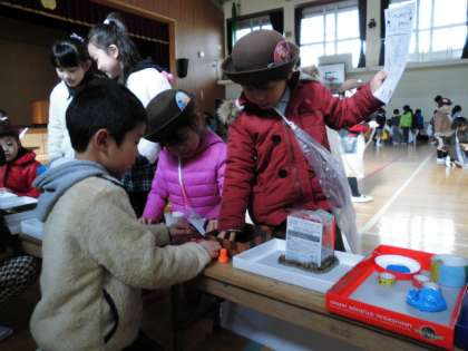 ・紙飛行機とばし・どんぐりゴマ・じしゃくめいろ