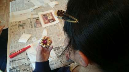 6年生はリトルワールドから,木曽福島にある,「ふるさと体験館」に移動し,ブローチづくりに取り組みました。