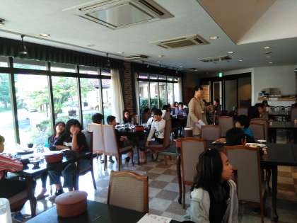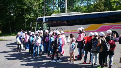 朝食を食べ終わり,バスに乗って出発です。