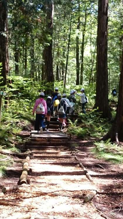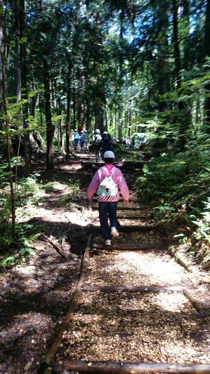 森林鉄道のあと,子どもたちは,たくさんの森林イオンを浴びながら木漏れ日の中を歩きました。