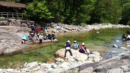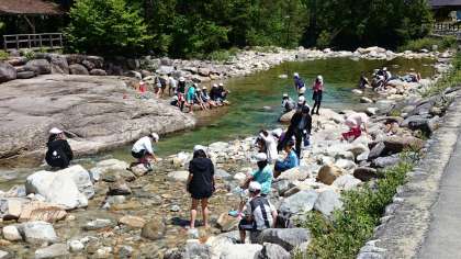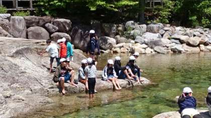 お昼のバーベキューまで少し時間があるので,冷たい水にふれてみることにしました。