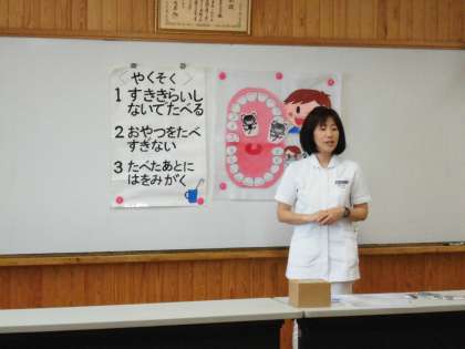 虫歯の予防方法と,正しい歯磨きの仕方を勉強しました。