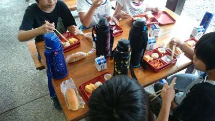 きょうは,あいにくの雨模様ですが,風は,あまり吹いていません。しっかり朝ご飯を食べて今日の活動に備えます。