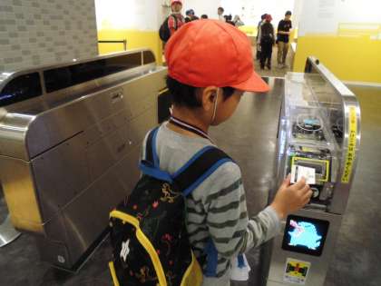 2階の切符売り場では,自分たちで切符を買い,改札を通ることができました☆