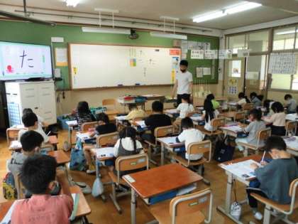 本日(5月10日),5時間目は国語科「こえにだしてよもう」の授業でした。本日から始まる音読の宿題「あさのおひさま」を大きな声で元気に読めました。ひらがなの「た」と「ひ」の書き方も学びました。