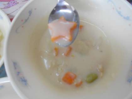チャウダーには,星型のラッキーにんじんが入っていて,うれしそうに見せてくれました。