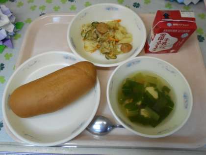 「ソーセージと野菜のいためナムル」「とうふと青菜のスープ」ともに残菜ゼロでした!