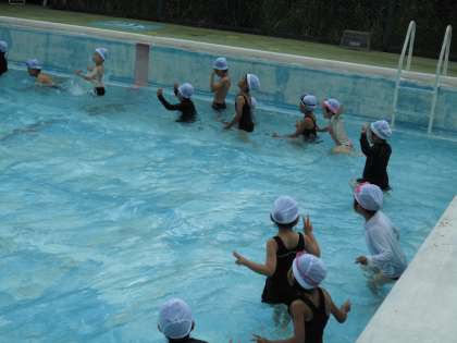 プールでの約束をしり,安全に楽しい学習を進めていきたいです。少しひんやりとする水の中に入り,子どもたちのキャーキャーと楽しそうな声が聞こえてきました。今後の学習も楽しみです。