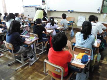 5年生は,米づくりのさかんな地域を学習しています。「庄内平野では,どのように米作りを行っているのだろうか」という学習問題について,予想を立て学習していきました。広い土地を利用して,機械を使って米作りをしている。きれいな水を使って米作りをしているなどと自分の考えたことを友だちに伝え合っていました。