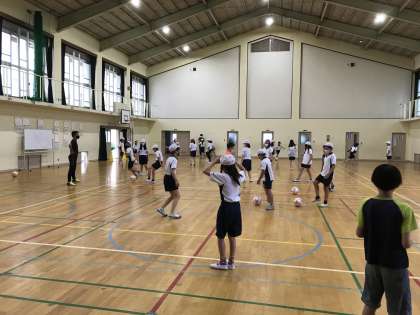 先週の金曜日,サンガのコーチに来ていただきました。子どもたちが楽しみながらスポーツをすることを中心に、スポーツを通して仲間づくりやコミュニケーション能力のスキルを学びました。「仲間を意識する」ことはこれからの生活でとても大切なことだと思います。