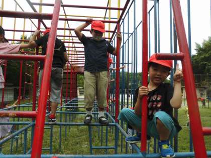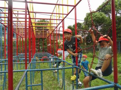 体育の学習でゆうぐあそびに取り組み,休み時間にゆうぐで遊ぶ児童が増えました。