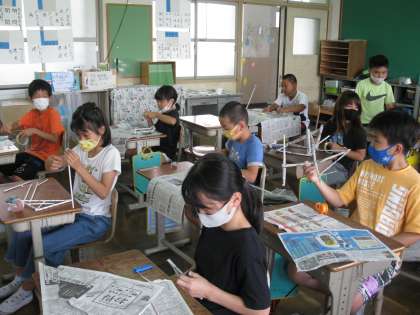 図工の時間に造形遊び『つなぐんぐん」の学習をしました。
