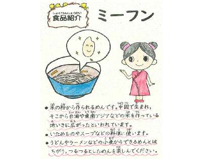 「ミーフンスープ」は米粉から作られた「米粉麺」を使ったスープで,つるつるの麺を楽しんで食べていました。