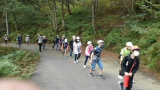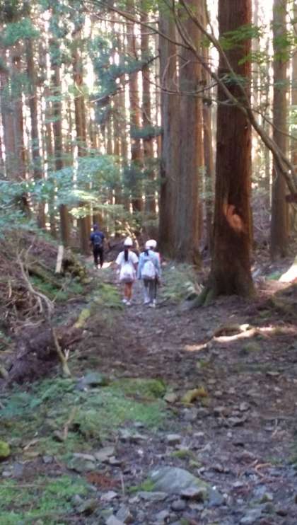 みんな元気に過ごしています。山の家に向かって山道を歩きます。