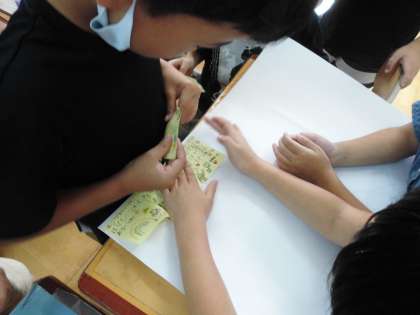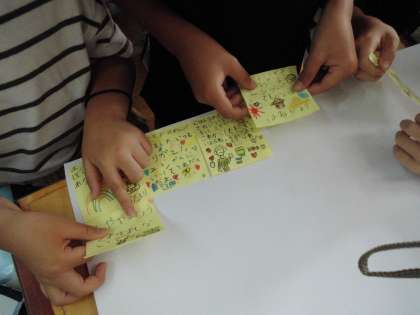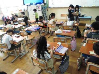 13日水曜日にお別れ会があります。今日は,お別れする友だちがにこにこしてくれるためのプレゼントづくりをしました。お別れニコニコ大作戦です。一生懸命相手のことを考えて,メッセージを書くことができました。