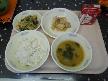 今日のみそ汁の具は,じゃがいも・たまねぎ・わかめでした。今週にはいって気温がぐんと下がったので,温かいおみそ汁で体が温まりました。