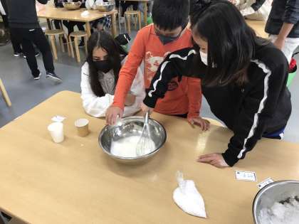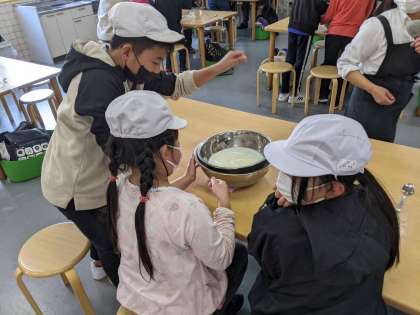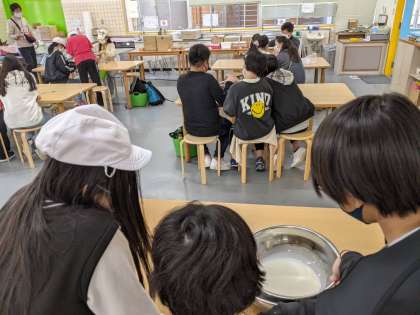 分離しないように素早くかき混ぜるとだんだん固まってきます。