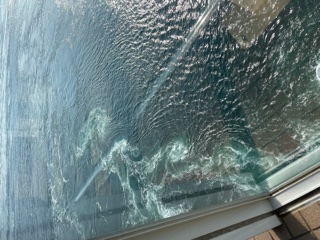 渦の道では,約45メートルの高さから鳴門海峡に発生する渦潮をのぞき込みました。
