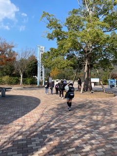 グループで子ども科学館を見学したり,自然の中で過ごしたりします。昼食もこの公園内でいただきます。