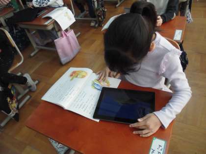 タブレットのロイロノートで作成した付箋ツールを使い,身の回りの物の名前を集めて整理することができました。