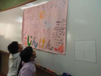 クラスの人権目標の掲示物をつくりました。