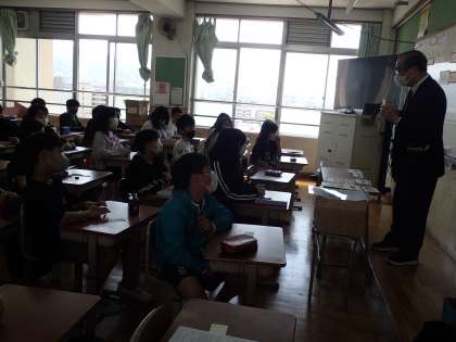 4月12日(水)3時間目に山科署の方に来ていただいて,「非行防止教室」を行いました。実際に起こった事故や事件の様子やその時のどうすれば事故や事件を防ぐことができたのかなど,たくさん教えていただきました。