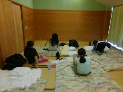 食事の前に布団の用意をしました。事前に寝具の使い方を確認していたので、うまく敷くことができました。
