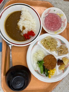 夕食の時間です。おかずの品数も多く何をいただこうか迷います。
