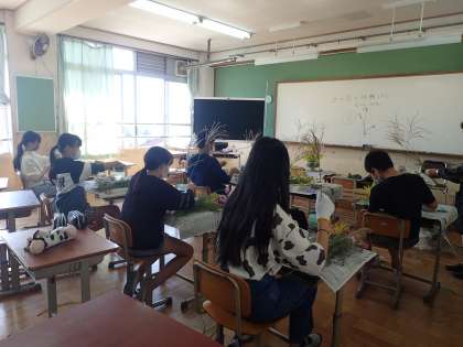 10月14日(金)に6年生は室町文化体験学習を行いました。墨絵、生け花、お箏,庭作りの4つから自分の好きなものを1つ選んで体験しました。それぞれに工夫を凝らして学習に取り組むことができました。