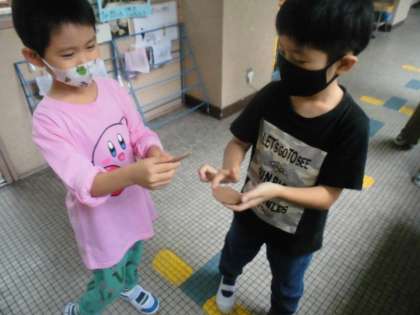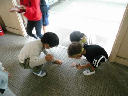 今日はみのまわりのデコボコを探しに、教室の近くを探しました。自分のお気に入りもひとつ選ぶことができましたね。