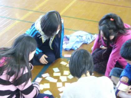 まず,百人一首の覚え方や正しいルールや札の取り方を学びました。
