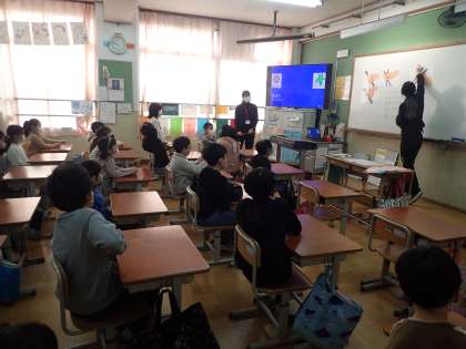2年生は食育の勉強をしました。テーマはお箸の正しい使い方についてです。お話を聞いてから、動画を見て実際にお箸を手にして練習しました。友達と仲良く練習する姿が印象的でした。お箸を正しく使うことの大切さに気が付くことができた1時間でした。