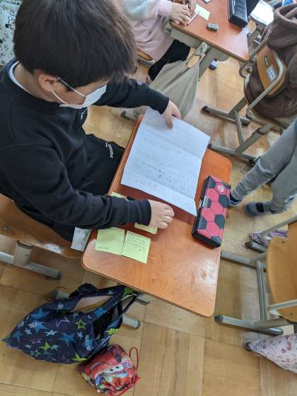 今日は友だちの本を読んで、感想を伝えました。