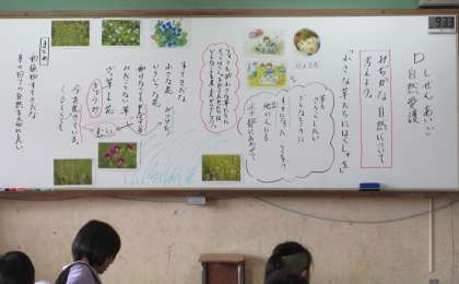 教材「小さな草たちにはく手を」を読んで、身近な自然とのふれあいについて考えました。