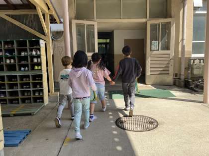 「がっこうたんけん」がスタートします。2年生がリーダーとなり、1年生に学校のことをたくさん教えます。いろいろな教室をまわることにわくわくしています。