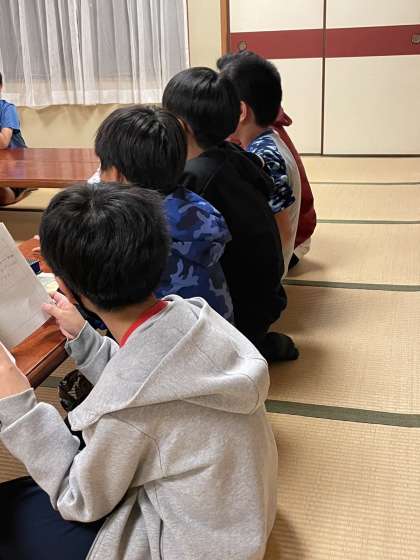 1日目最後の集会を終え、就寝の準備が始まりました。