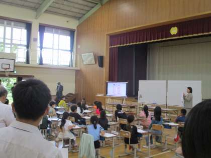 今回は、小栗栖宮山小学校の4年生社会科の授業を公開しました。児童・生徒と教師の対話をもとに問題意識を高めていく手立てについて、小学校・中学校の枠を越えて一緒に考えることができました。