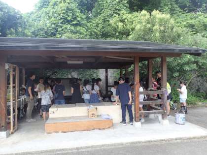 今度はかまどでの薪の組み方の練習です。
