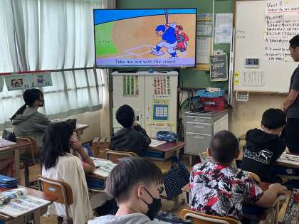 好きなスポーツを尋ねたり、答えたりするために、映像のコンテンツを使って練習をしています。