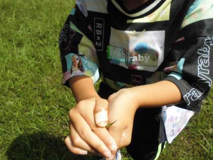 運動場では、バッタやカマキリも見つけました。