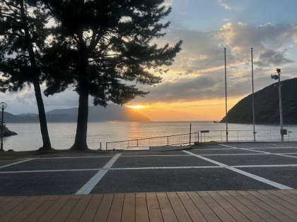 広場から見える、美しい夕日です。
