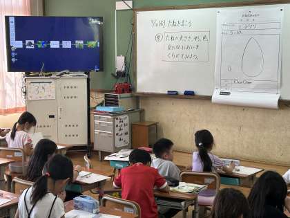 ヒマワリのたねを観察しました。虫めがねを使うとより詳しく特徴がわかります。